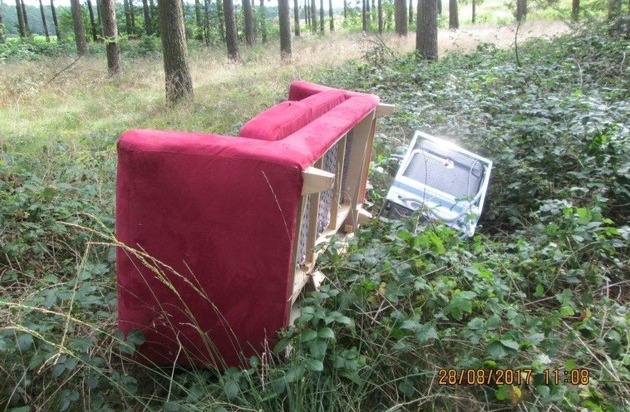 Unbekannte luden insbesondere ein rotes Sofa, einen Geschirrspüler, eine Lautsprecherbox und vier alte Radblenden in einem Waldstück unweit eines Feldwegs hinter dem dortigen Motorcrossplatz ab und entfernten sich anschließend.
