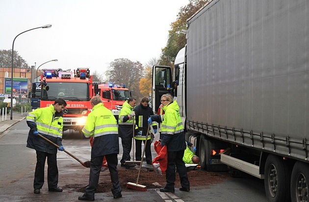 FW-E: 40-Tonnen-Sattelzug reißt sich kurz vor dem Ziel seinen Kraftstofftank auf, größere Menge Diesel läuft aus
