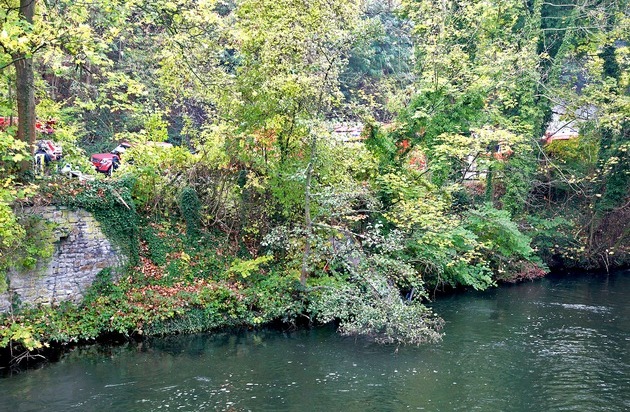 Aus bislang ungeklärter Ursache ist heute Morgen (03.11.2017) gegen viertel nach neun ein Opel Astra Kombi von der Westfalenstraße (Essen-Steele) abgekommen und in einen Nebenarm der Ruhr gerutscht. Der Fahrer war von der Ruhrallee kommend in Richtung Steele unterwegs, querte den Gehweg und durchbrach eine Absperrung. Dann rollte der Kombi etwa fünf Meter tief eine mit Buschwerk bewachsene, steile Böschung hinab und versank bis zur Windschutzscheibe im Wasser, beinahe senkrecht stehend. Von der Straße aus war das Fahrzeug nicht zu sehen. Die Insassen zweier vorbeifahrender Autos sahen massiv weißen Rauch aufsteigen und blieben stehen, um nachzusehen. Als die drei Männer (40, 44 und 45 Jahre alt) das Desaster erkannten, zögerten sie nicht, sondern begannen unverzüglich mit der Rettung des Astra-Fahrers, der angeschnallt und bewusstlos in dem Wrack hing. Einer kletterte in den Kofferraum des Kombis und sicherte den Verletzten, hielt ihn fest. Ein weiterer Retter öffnete die Fahrertür, löste den Gurt und zu dritt zogen sie den Mann aus dem Fahrzeug. Die Besatzung eines zufällig vorbeikommenden Krankenwagens unterstütze mit einer speziellen Trage, und noch bevor die alarmierten Einsatzkräfte eintrafen, begannen sie mit der Erstversorgung des Patienten. Ein Notarzt übernahm, der Patient kam unter laufender Reanimation in eine Klinik. Sein Zustand ist kritisch. Besonders erwähnenswert ist das spontane und selbstlose Verhalten der drei Retter. Sie zögerten nicht eine Sekunde und haben unter Einsatz ihrer eigenen Gesundheit einen Menschen gerettet. Die Situation war unklar, das Unfallfahrzeug nicht gesichert und hätte durchaus weiter abrutschen können. Die Feuerwehr barg das Unfallfahrzeug schließlich mit einem Feuerwehrkran. Die Westfalenstraße war während des Rettungseinsatzes zwischen Ruhrallee und Steele gesperrt. (MF)