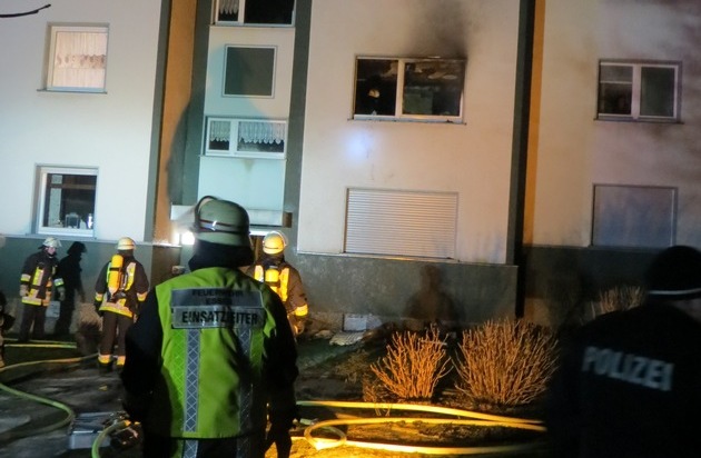 Aus bislang ungeklärter Ursache ist in der vergangenen Nacht im 1. Obergeschoß eines Mehrfamilienhauses im Spervogelweg in Essen-Freisenbruch ein Brand ausgebrochen. Kurz nach Eintreffen der ersten Einsatzkräfte schlugen Feuer und Rauch aus dem bereits geborstenen Fenster der Brandwohnung. Zwei Rohre kamen zum Einsatz, davon eines von außen, um den Brandübergang auf das darüber liegende Geschoß zu verhindern und eines zur Menschenrettung im Innenangriff durch den innenliegenden Treppenraum. Aus der rechten Wohnung des Brandgeschosses brachten Einsatzkräfte eine 57 Jahre alte Dame durch den Treppenraum ins Freie. Durch den Brand erlitt die Dame eine Rauchgasvergiftung, Verbrennungen an der Hand und wurde anschließend durch den anwesenden Rettungsdienst in ein zuständiges Krankenhaus transportiert. Weitere Personen wurden durch das Feuer aufgrund des schnellen Eingreifens der Feuerwehr nicht geschädigt. Neben der Brandbekämpfung machten die Minusgrade den Einsatzkräften zu schaffen. Die niedrigen Temperaturen ließen das Löschwasser zum Teil gefrieren, brachten vereinzelt Schläuche zum Platzen, die ersetzt werden mussten und im Boden eingefrorene Sperrpfosten erschwerten den Zugang sowie die Löscharbeiten. Um der zunehmenden Glatteisbildung auf den angrenzenden Straßen entgegen zu wirken wurde zusätzlich ein Streuwagen der örtlichen Entsorgungsbetriebe eingesetzt. Das Feuer selbst war schnell nach intensiven Löscharbeiten vollständig gelöscht. Belüftungsmaßnahmen und Schadstoffmessungen im gesamten Haus stellten sicher, dass alle Menschen wieder in ihre Wohnungen zurückkehren konnten. Die Brandwohnung allerdings ist zunächst unbewohnbar. Die Polizei hat die Ermittlungen zur Brandursache aufgenommen. (BW)
