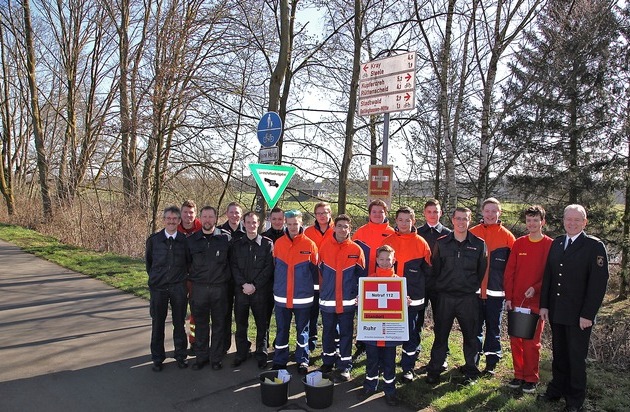 FW-E: Jugendfeuerwehr und Jugend-Einsatzteam der DLRG pflegen die RuSIS-Beschilderung an Ruhr und Baldeneysee