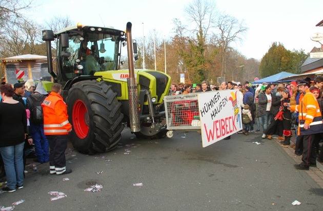 Durch Präsenz beim Karnevalsumzug und der Abschlussveranstaltung will die Polizei dazu beitragen, dass der friedliche Charakter des Karnevals erhalten bleibt und die Jecken den Karneval als Brauchtum pflegen können. Absprachen hinsichtlich Sicherheit hat es mit den Veranstaltern und den Ordnungsbehörden bereits weit im Voraus gegeben. Als Ergebnis dieser Absprachen ergibt sich u. a. die diesjährige Abänderung in der straßenbehördlichen Erlaubnis, dass der Veranstaltungszug an der Einmündung Segelhorster Straße / Barksener Weg endet und nicht bis zum Parkplatz vor dem Baxmann-Zentrum (Stadthalle) durchfahren wird. Alle Mitfahrer auf den Festwagen verlassen die Fahrzeuge bzw. deren Anhänger und beenden als Fußgänger den Umzug. Die am Umzug beteiligten Fahrzeuge verlassen geschlossen den Veranstaltungsbereich über die Segelhorster Straße in die Schilfstraße.