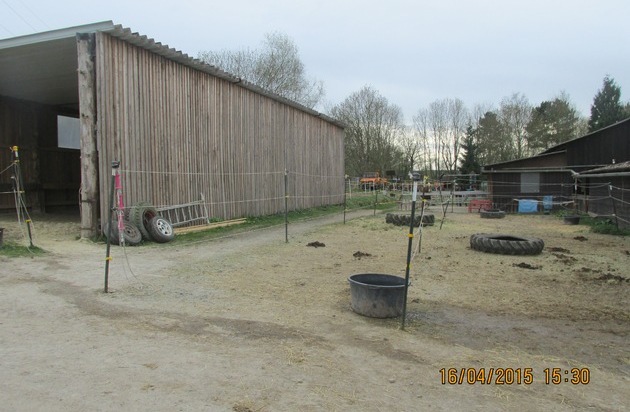 Zu diesem Zeitpunkt soll sich im Bereich der Koppel ein dunkel gekleideter, dem angrenzenden Hof nicht zugehöriger ca. 16 Jahre alter Jugendlicher, aufgehalten haben. Ob der Jugendliche mit der Tat in Zusammenhang gebracht werden kann, ist derzeit nicht bekannt.