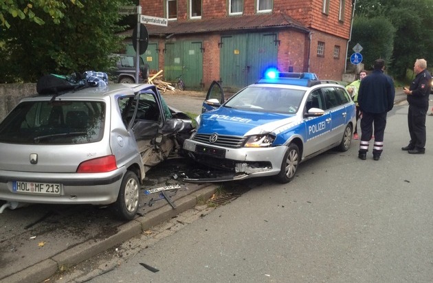 POL-HOL: Wieder wurde ein Funkstreifenwagen beschädigt