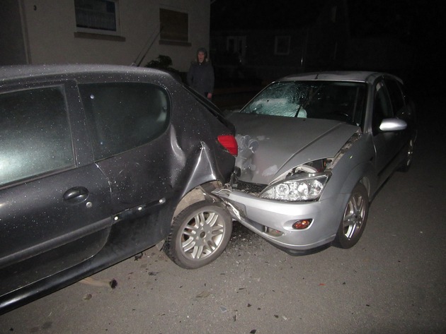 Rund 7.500,-- EUR Schaden richtete eine 31jährige Fahrerin am gestrigen Sonntagabend mit ihrem PKW an, als sie auf der Straße Papiermühle in Holzminden nach rechts von der Fahrspur abkam und geparkte Fahrzeuge "rammte". Gegen 22:00 Uhr befuhr die Holzmindenerin mit ihrem Ford Focus die Straße Papiermühle in Richtung Rumohrtalstraße. In Höhe Haus Nr. 3 fuhr die Frau ungebremst auf einen am rechten Fahrbahnrand ordnungsgemäß geparkten Peugoet. Dieser wurde wiederum durch die Wucht des Aufpralls auf einen davor abgestellten PKW Ford Mondeo geschoben. Alle drei PKW werden zum Teil erheblich beschädigt. Es entstand ein Gesamtschaden von mindestens 7.500,-- EUR. Bei der Überprüfung der Eignung der PKW-Fahrerin am Straßenverkehr wurde durch die unfallaufnehmenden Beamten festgestellt, dass die 31jährige unter Alkoholeinfluss stand. Die Atemalkoholmessung ergab einen Wert von 0,70 Promille. Daraufhin musste sich die Frau einer Blutentnahme unterziehen. Der Führerschein wurde sichergestellt.