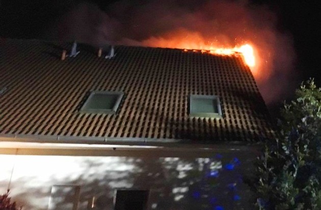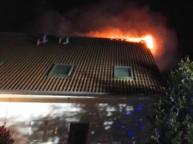 Das Feuer wurde kurz vor Mitternacht von einem Anwohner entdeckt. Beim Eintreffen der alarmierten Einsatzkräfte hatten die Flammen bereits das Dach der einen Gebäudehälfte erreicht. Um 01.18 Uhr konnte "Feuer aus" gemeldet werden.