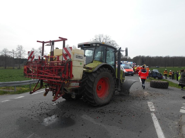 POL-NI: Traktorfahrer übersieht PKW - vier verletzte Personen davon zwei schwer