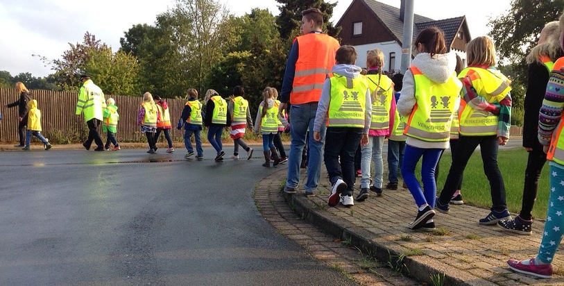 All diese Vorteile greift die Schulanfangsaktion "Schulbus auf Füßen" auf, die erstmalig an einer Grundschule im Landkreis Nienburg, an der Gretel-Bergmann-Grundschule Eystrup, durchgeführt wurde. Gemeinsam mit den Eltern, der Schulleitung, den Lehrkräften und der örtlichen Polizei wurde unter der Federführung von Axel Grünvogel, Verkehrssicherheitsberater der Polizei Nienburg, das Konzept umgesetzt.