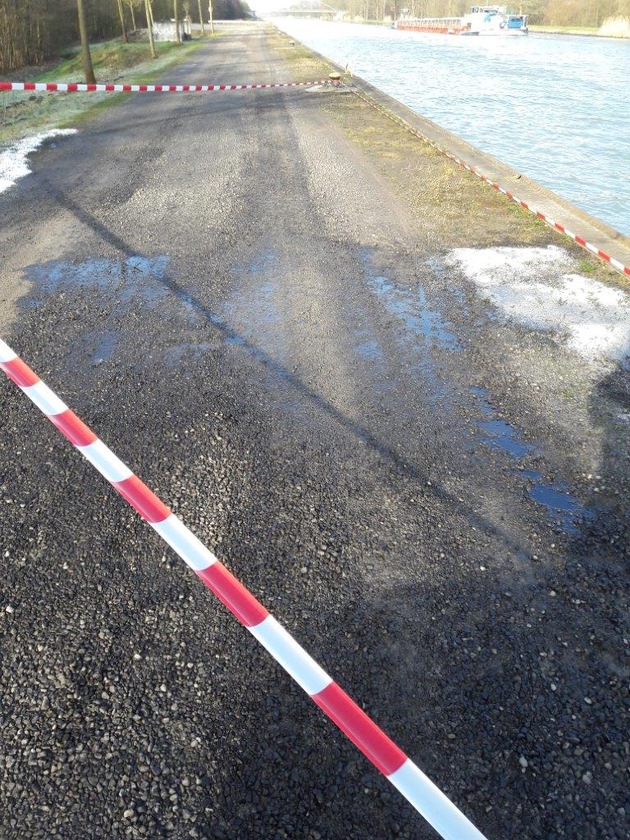 (BER)Am Dienstagnachmittag gegen 17.00 Uhr erhielt die Polizei in Bad Nenndorf den Hinweis auf eine große Öllache direkt am Mittellandkanal. Bei der Überprüfung des Hinweises stellten die Polizeibeamten fest, dass sich an der Schiffsanlegestelle Haste am Mittellandkanal in der Nähe der Zufahrt zum Sportheim eine große Öllache auf dem befestigten Weg neben dem Gewässer befand. Nach Schätzung der Wasserschutzpolizei, die den Tatort ebenfalls in Augenschein nahm, handelte es sich um ca. 20 Liter Motoröls. Die Beamten der Wasserschutzpolizei, die Mitarbeiter der unteren Wasserbehörde und das Wasserschifffahrtsamt in Braunschweig waren eingeschaltet worden, da nicht auszuschließen war, dass Öl in den Kanal gelangt war - diese Befürchtung bewahrheitete sich glücklicherweise nicht. Die Stelle wurde mittels Bindemittel und einer Absperrung gesichert. Hinweise auf einen möglichen Verursacher aus dem Kreis der Binnenschiffer oder jemanden, der sein Altöl an den Müllsammelboxen der Schiffsanlegestelle entsorgt hat, nimmt die Polizei in Bad Nenndorf 05723 / 94610 sowie die Wasserschutzpolizei in Hannover unter 0511 / 1091945 entgegen.