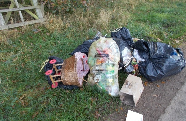 (BER)Am Donnerstag, 19.10.2017, informierte ein Spaziergänger die Polizei in Liebenau über eine Müllentsorgung in der Nähe des Gewerbegebietes " Beckebohnen". Drei Säcke mit Restmüll sowie ein Kinderpuppenwagen waren Auf der Flage am Wegesrand entsorgt worden. Die Polizei bittet um Hinweise auf den möglichen Verursacher, vielleicht erkennt jemand den Kinderpuppenwagen. Hinweise bitte an die Dienststelle in Marklohe unter 05021 / 961980 oder an die Polizeiinspektion unter 05021 / 97780.