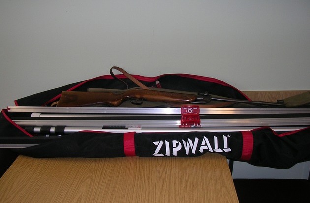 OSTERODE (RCH/us) Am 09.03.15 versuchte eine unbekannte Person bei einem Osteroder Waffenhändler eine Tasche mit einem ZIPWALL-System (Staubschutzwand) und ein schrottreifes Luftgewehr zu verkaufen (Foto in Anhang). Als der Waffenhändler ablehnte, warf der offensichtlich angetrunkene Verkaufsinteressent die Gegenstände auf den Boden und entfernte sich. Aufgrund des Verhaltens der suspekten Person ist nicht auszuschließen, dass die angeboten Gegenstände aus einer Straftat stammen. Geschädigte werden gebeten, sich bei der Polizei, unter der Tel. 05522/508-0, zu melden.