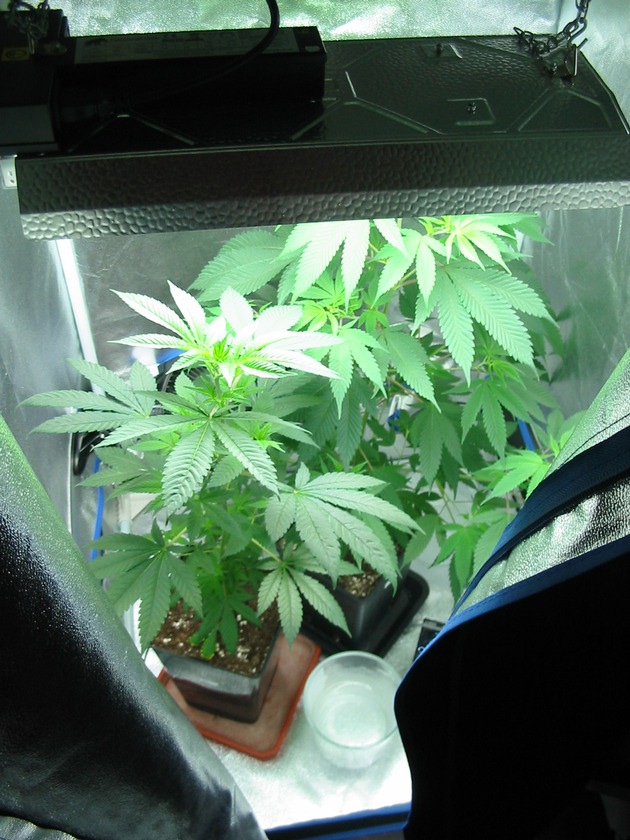 Am 21.04.2015 gegen 09.00 Uhr wurde der Beschluss vollstreckt. In Abwesenheit des 28-Jährigen wurden in der Wohnung sechs mittlerweile ausgewachsene Cannabispflanzen aufgefunden und sichergestellt. Die Pflanzen wurden in einem Pflanzzelt gezüchtet (siehe beigefügtes Foto). Pflanzzelt und Pflanzen wurden sichergestellt.