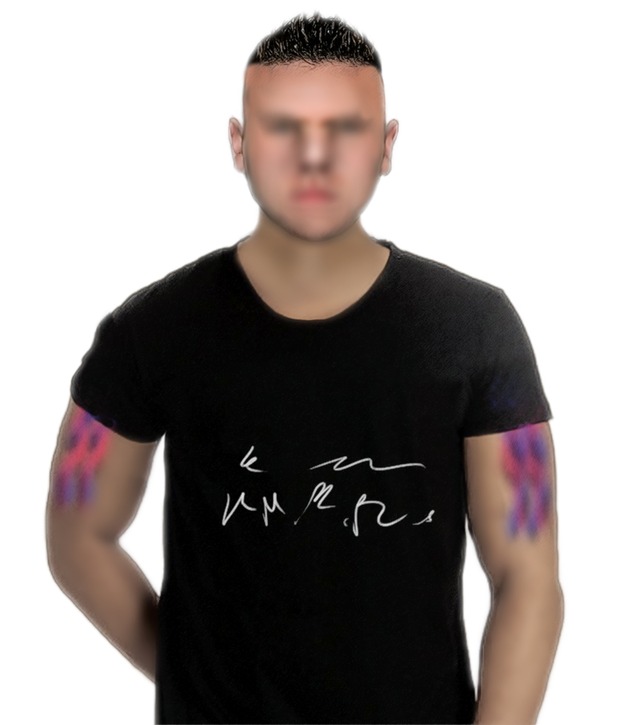 - Körperliche Merkmale: beide Oberarme bunt tätowiert (nicht näher
