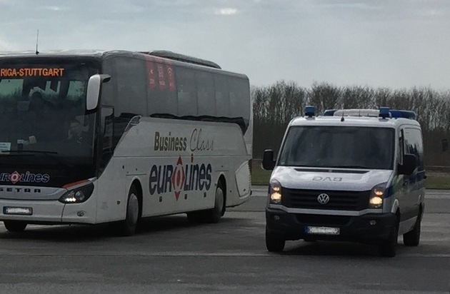 Die Polizei zählte in den Bussen rund 180 Fahrgäste. Das Gewerbeaufsichtsamt und das Bundesamt für Güterverkehr unterstützen die Kontroll- Aktion.
