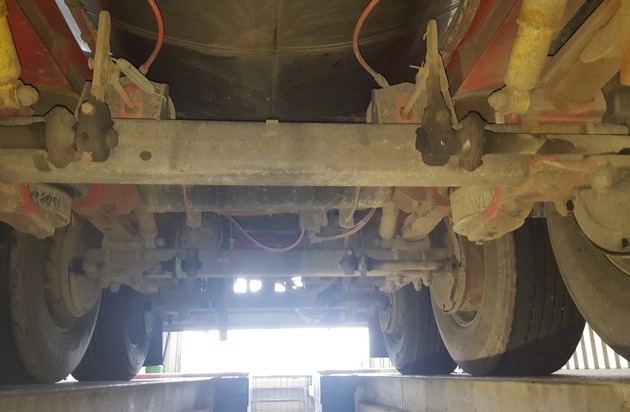 Am Dienstag (12. April 2016) kontrollierten speziell geschulte Beamte des Polizeikommissariats Langen zwei ukrainische Tanklastzüge auf dem Parkplatz Nesse (A 27). Beladen waren beide mit jeweils ca. 23.000 Litern Apfelsaftkonzentrat, welches für eine Firma im Landkreis Cuxhaven bestimmt war. Bei der ersten Kontrolle ergaben sich diverse Hinweise auf gravierende technische Mängel, so dass eine technische Überprüfung durch einen Sachverständigen bei einer Fachwerkstatt angeordnet wurde. Die Überprüfung ergab bei beiden Fahrzeugen schwere technische Mängel, wobei der Auflieger des einen Tanklastzuges so schwere Mängel im Bereich der Achsaufhängung und der Bremsen aufwies, dass dieser seine Fahrt nicht mehr fortsetzen durfte. Er wurde in Absprache mit der Zulassungsstelle des Landkreises Cuxhaven noch vor Ort außer Betrieb gesetzt. Das Kennzeichen sowie die Zulassungsbescheinigung wurden sichergestellt. Um diese wiederzuerlangen, müssen die Mängel durch den Halter umgehend behoben werden. Neben diesen Reparaturkosten erwartet ihn ein empfindliches Bußgeld. Zusätzlich kommt zum Tragen, dass nach Aussage der Fahrer beide Fahrzeuge erst vor einer Woche in einer Werkstatt repariert wurden. Dies konnte durch die kontrollierenden Beamten und den Sachverständigen auch festgestellt werden. Allerdings wurden die Reparaturen dermaßen schlecht bzw. mangelhaft ausgeführt, dass diese keine oder kaum Wirkung zeigten. In einer kritischen Fahrsituation (z.B. eine Vollbremsung) wäre es nicht auszuschließen, dass es bei derartigen Mängeln zu einem schweren Verkehrsunfall kommt Der zweite Tanklastzug konnte seine Fahrt nach kleinen Reparaturen vor Ort fortsetzen.