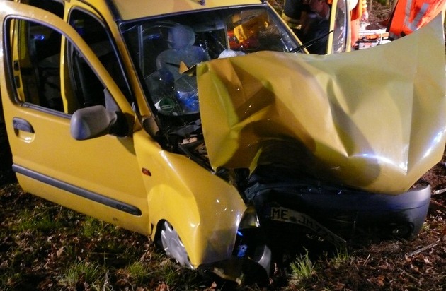 POL-DN: Frontal gegen Baum gefahren - tolle Ersthelfer