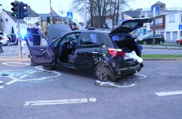 Eine 73 Jahre alte Autofahrerin befuhr die August-Klotz-Straße in Fahrtrichtung Aachener Straße und beabsichtigte gegen 19:40 Uhr nach links in die Weierstraße abzubiegen. Dabei übersah sie einen 33-Jährigen in seinem Pkw, der auf der August-Klotz-Straße, laut Zeugen mit hoher Geschwindigkeit, in Richtung Birkesdorf fuhr. Der Wagen der 73-Jährigen stieß gegen das Fahrzeug des Düreners. Durch den Aufprall überschlug und drehte er sich, dann kam er mittig auf der Fahrbahn zum Stillstand. Ersthelfer kümmerten sich um die Verletzten. Die Unfallbeteiligten sowie der 19 Jahre alte Beifahrer im Wagen der Unfallverursacherin wurden mit Rettungswagen in Krankenhäuser verbracht, wo sie stationär aufgenommen wurden.