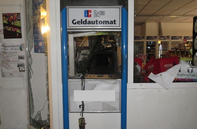 Gegen 01:55 Uhr hörte eine Angestellte der Tankstelle, die bereits im Gebäude mit Vorbereitungen für die Öffnung beschäftigt war, laute Geräusche. In der Annahme, dass in die Geschäftsräume eingebrochen wird, schloss sich die Frau im hinteren Bereich ein und verständigte die Polizei. Unmittelbar danach hörten sie sowie umliegende Anwohner einen explosionsartigen Knall. Zeugen, die infolgedessen aus dem Fenster sahen, konnten noch beobachten, wie zwei dunkel gekleidete, maskierte Personen in eine bereitstehende dunkle Limousine der Marke Audi stiegen und davon rasten. An dem Fahrzeug waren vermutlich belgische Kennzeichen angebracht. Die zwischenzeitlich auf der Anfahrt befindlichen Polizeifahrzeuge hatten noch kurz Sichtkontakt zum flüchtenden Fahrzeug; dieses fuhr schließlich mit deutlich überhöhter Geschwindigkeit auf die BAB in Richtung Aachen auf. Sofort eingeleitete überörtliche Fahndungsmaßnahmen blieben ergebnislos. Die Höhe der Beute aus dem an der Außenseite installierten Automaten kann noch nicht beziffert werden. Am Tankstellengebäude entstand erheblicher Sachschaden.