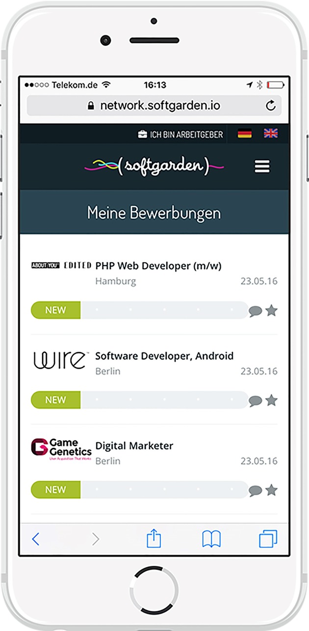 Aber softgarden geht noch einen Schritt weiter. Bewerber sollen jederzeit sehen können, in welchem Status sich ihre Bewerbung befindet. Ist sie "unbearbeitet", "angesehen" oder "zur Prüfung bei der Fachabteilung"? Wenn Arbeitgeber dem Verfahren zustimmen, können sich Bewerber per Mausklick aus dem System heraus über den Stand der Dinge informieren, ohne bei ihrem Wunscharbeitgeber nachfragen zu müssen.