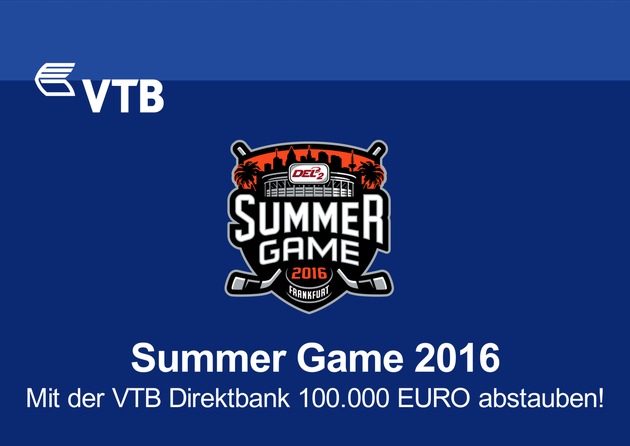 Nils Rahe, Marketing Manager der VTB Direktbank erklärt: "Als Hauptsponsor der Löwen Frankfurt haben wir uns für das Eishockey Spektakel etwas ganz besonderes ausgedacht. Wir verlosen 10 mal zwei Tickets für das Summer Game am 10.09.2016. Die Ticket-Gewinner nehmen automatisch an der Verlosung zum 100.000 EURO Schuss teil. Wir möchten aber auch jedem anderen Besucher die Chance auf das große Los geben. Deshalb kann sich jeder Besucher am 10.09.2016 zwischen 12:00 und 17:00 Uhr am VTB Direktbank Promotion-Zelt vor der Commerzbank-Arena für das Gewinnspiel registrieren. Der Gewinner wird ausgelost und vor Ort informiert. Dann gilt es den Puck aus 21,4 Metern in die 8,26 cm breite Toröffnung zu schießen - wer trifft kassiert und geht mit einer ordentlichen Gewinnsumme nach Hause. Diese kann selbstverständlich auch direkt in Form eines Tagesgeld- oder Festgeldkontos bei uns angelegt werden. So kann aus 100.000 EURO ganz schnell noch mehr werden!"