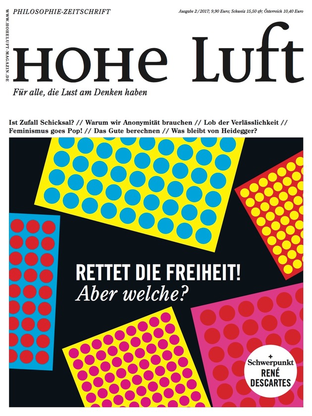 HOHE LUFT betrachtet aktuelle und bewegende Themen aus Gesellschaft & Kultur, Politik & Wirtschaft aus einem philosophischen Blickwinkel und eröffnet dem Leser überraschende Perspektiven auf Grundfragen des Lebens.