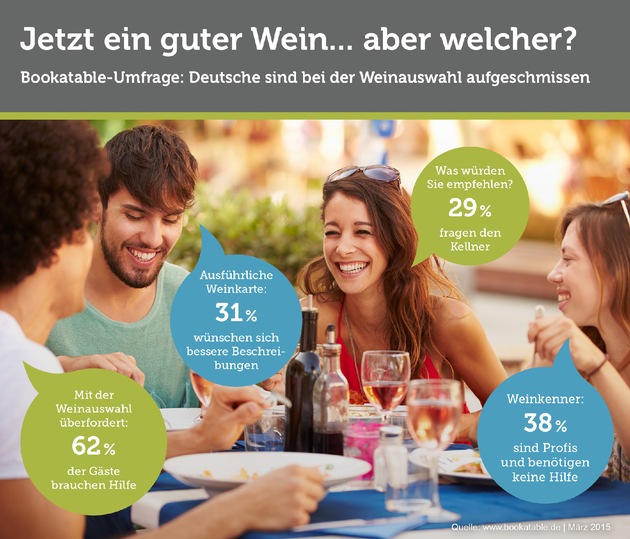 Bookatable-Umfrage: Land der Laien? - Die Mehrheit der Deutschen benötigt Hilfe bei der Weinauswahl im Restaurant