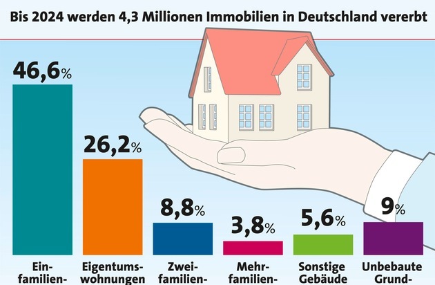 Bis 2024 erben rund 7,7 Millionen Haushalte etwa 3,1 Billionen Euro. Immer häufiger befinden sich auch Immobilien im Nachlass.
