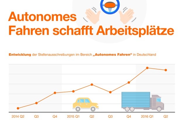 Sehr anschaulich lässt sich Deutschlands gute Position am Beispiel "Autonomes Fahren" (self-driving technology) darstellen. Ein Blick auf den prozentualen Anteil der ausgeschriebenen Stellen in diesem Bereich zeigt: Unter den weltweiten Top 10 liegen mit Bosch, Daimler, BMW und Mini gleich vier deutsche Unternehmen. An der Spitze rangiert Google, also ein Unternehmen, das seinen Ursprung im Technologiesektor hat, jetzt aber die Branche aufmischt. Insgesamt kommen deutsche Unternehmen etwa auf 15 Prozent der weltweit ausgeschrieben Stellen für Autonomes Fahren.