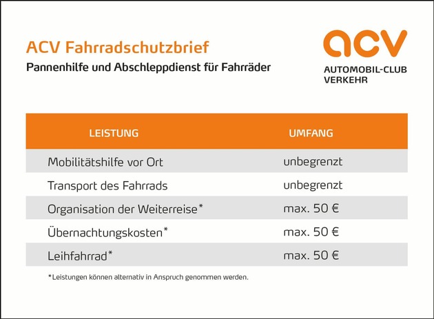 Übersichtliche Infos zum ACV Fahrradschutzbrief finden Sie hier: www.acv.de/mitgliedschaft/fahrradschutzbrief/