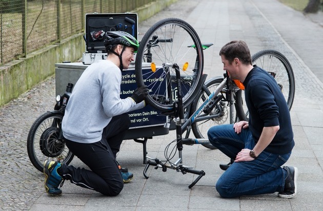 3. Kleinere Defekte werden vor Ort repariert. Mobile Fahrradwerkstätten, die insbesondere in Städten mit dem Lastenfahrrad unterwegs sind, haben eine Mini-Werkstatt mit dem passenden Equipment für die Reparatur dabei. Zudem bringen die Mechaniker das nötige Zubehör mit, etwa wenn das Fahrrad einen neuen Schlauch braucht. Ist das Rad schwerer beschädigt, wird es in die nächste Werkstatt, zum Ziel- oder Wohnort transportiert.