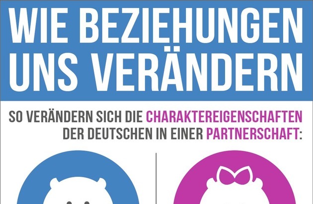 "Das Wunderbare am Menschen ist, dass er wohl derselbe bleibt, aber nicht der gleiche" - so der Schriftsteller Wilhelm Raabe. Dies gilt auch für deutsche Paare: Sie erkennen zwar einen Wandel bei sich und beim Partner, dieser ist jedoch in der Regel von positiver Natur. So sagen 24 Prozent, dass sie durch ihre Beziehung humorvoller geworden sind - im Gegensatz zu lediglich vier Prozent, die meinen, nun weniger zum Lachen zu haben als in ihrer Singlezeit.