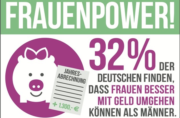 Unter den insgesamt rund 1.200 Befragten - davon genauso viele Frauen wie Männer - sind 32 Prozent der Ansicht, dass Frauen im Umgang mit Geld umsichtiger sind als Männer. Dagegen sprechen lediglich 19 Prozent den Männern ein besseres Händchen bei finanziellen Angelegenheiten zu. Für 47 Prozent gibt es keine geschlechtsspezifischen Unterschiede in dieser Frage.