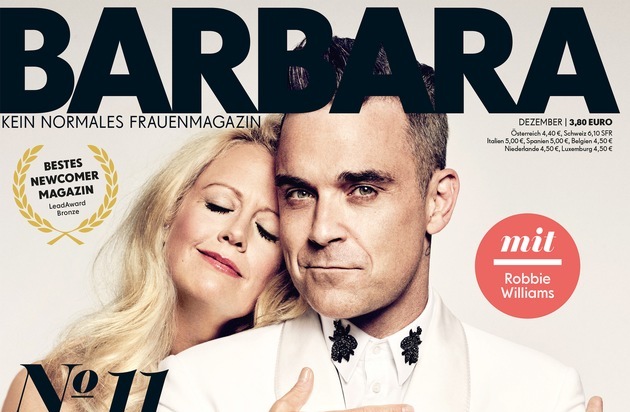 In der neuen Ausgabe des Magazins BARBARA, die ab sofort im Handel erhältlich ist, spricht Sänger Robbie Williams mit Barbara Schöneberger über Neurosen, Zukunftsängste und sein Verhältnis zu Geld. Manchmal fiele es ihm heute noch schwer zu begreifen, wie reich er ist. "Ich führe ein irreales Leben, wirklich. So unfassbar anders als das, in dem ich aufgewachsen bin", erzählt er. "Ich mache immer noch hinter meiner Frau Ayda sämtliche Lampen aus. Diese Verschwendung! So bin ich nicht erzogen worden!" Wenn all das Geld von heute auf morgen weg wäre, könnte er sich damit arrangieren, meint er. Bett, Klo, Fernseher und Internet sind die Dinge, die er am nötigsten zum Leben bräuchte. Was ihm aber schon zu schaffen macht, ist der Gedanke, ein Ex-Popstar zu sein: "Sind da draußen noch genügend Leute, die mich hören wollen? Lässt man beim Radiosender meine neue CD mit spitzen Fingern in den Mülleimer fallen? Robbie Williams ist sich sicher: Ich möchte im Mainstream-Showbusiness sein, so lange es geht".