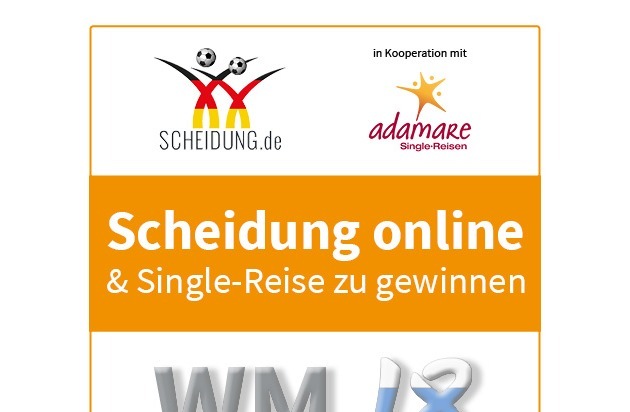 Das WM-Gewinnspiel von Scheidung.de (www.scheidung.de/gewinnspiele/wm) offeriert eine Online-Scheidung und übernimmt die gesamten Scheidungsgebühren. Für den Neustart gibt es eine schöne Single-Reise zu gewinnen.