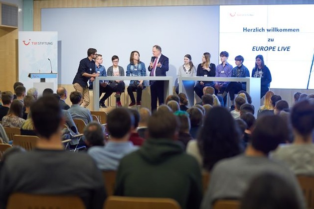 Welche Sicht hat die junge Generation auf Europa? Wie nah ist ihnen heute noch der Grundgedanke der Europäischen Union? Die TUI Stiftung möchte mit der Veranstaltungsreihe Europe Live! jungen Menschen die Gelegenheit geben, Experten aus Politik, Gesellschaft und europäischen Institutionen zu befragen und mit ihnen zu europäischen Themen zu diskutieren.