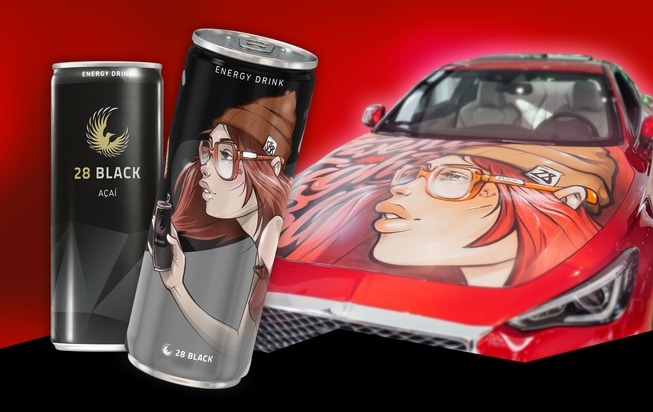 Hip, lässig, urban und im typischen Berlin-Style - das ist die neueste Edition des Energy Drinks 28 BLACK. Das Design stammt vom Berliner Szene-Künstler Stereoheat und ist das Ergebnis einer Kooperation zwischen 28 BLACK, Stereoheat und Infiniti im Rahmen der Gallery of Excellence Anfang Juni in Berlin. Während der dreitägigen Messe für innovative Produktneuheiten, die im Infinti Center Berlin stattfand, sprayte Urban Artist Stereoheat in einer beeindruckenden Life Performance die Motorhaube eines Infiniti Q60. Dabei integrierte er wesentliche Elemente von 28 BLACK wie die "28" in sein Kunstwerk, das im Showroom von Infiniti besichtigt werden kann. Das Motiv, das die Motorhaube des Q60 ziert, diente danach auch als Vorlage für das Design der 28 BLACK Dose.