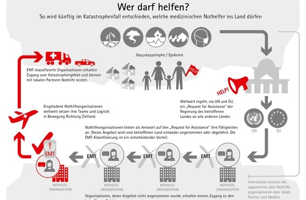Die EMT-Klassifizierung reguliert künftig den Zugang zu Katastrophengebieten, um schnell und koordiniert Menschenleben retten zu können. Nicht-klassifizierte Organisationen werden wesentlich schlechtere Chancen haben, eine Einreiseerlaubnis für betroffene Länder zu erhalten.