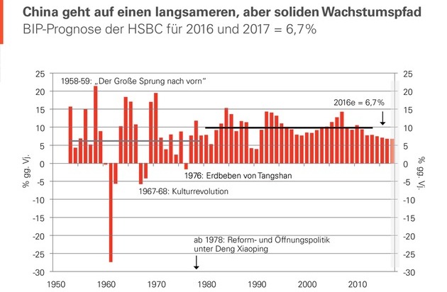 "Momentan muss China viele Bälle gleichzeitig in der Luft behalten, um den Umbau hin zu einer konsum- und dienstleistungsorientierten Volkswirtschaft umzusetzen", unterstreicht auch Chinaexperte Bernhard Esser, Director Treasury Research bei HSBC. Besonders wichtig sei jetzt, privaten Investoren einen effizienteren Kreditzugang zu ermöglichen und die Fehlallokationen in den Griff zu bekommen. Gleichzeitig setzt China auch auf ein nachhaltiges Wachstum der Wirtschaft, weshalb auch zukünftig mit einer Wachstumsprognose von durchschnittlich 6,7 Prozent zu rechnen ist.