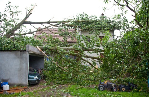 Betroffene sollten zuerst das Haus und die unmittelbare Umgebung begutachten, um mögliche Gefahrenquellen zu entdecken: Sind Balkontüren und Fenster in Ordnung, sitzen die Leitungen der Blitzschutzanlage noch fest auf dem Dachfirst, haben Äste und Bäume die Regenrinnen gelockert? Auch eine Sichtprüfung der Dacheindeckung ist sinnvoll. Wer Schäden feststellt, die zunächst niemandem gefährlich werden können, sollte sich mit Aufräumarbeiten allerdings zurückhalten. Auch wenn das Bedürfnis groß ist, schnell alles wieder in Ordnung zu bringen: Aktionismus kann die spätere Regulierung des Schadens unnötig erschweren.