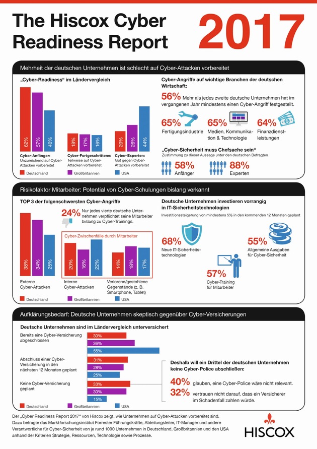 Der vollständige "Hiscox Cyber Readiness Report 2017" und weitere Informationen zur Studie sind unter www.hiscox.de/hiscox-cyber-readiness-report-2017 verfügbar.