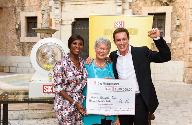 Sie konnte ihr Glück erst gar nicht fassen: Dagmar Schompeter-Munz aus Freiburg im Breisgau ist die neue SKL-Millionärin. Gemeinsam mit 19 weiteren SKL-Losbesitzern führte ihre ganz persönliche "Reise ins Glück" für ein Wochenende nach Palma de Mallorca. Unterstützt wurden die per Zufallsprinzip aus allen SKL-Spielern ermittelten Kandidaten dort von den beiden prominenten Glückspaten Motsi Mabuse und Gedeon Burkhard. Sie standen der bescheidenen 65-Jährigen auch zur Seite, als sie sich im Finale über den Hauptgewinn von 1 Million Euro freuen durfte. Damit kann sie sich jetzt einen langgehegten Traum erfüllen: eine neue Küche mit viel Platz.