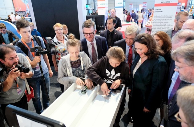 Bundesministerin Andrea Nahles besucht Stand der Autostadt auf der IdeenExpo 2017