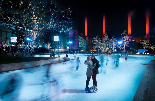 Die Autostadt in Wolfsburg setzt wieder zahlreiche Glanzlichter in der dunklen Jahreszeit: Vom 1. Dezember 2017 bis 7. Januar 2018 erwartet Besucher vor der beeindruckenden Kulisse der vier als Adventskerzen beleuchteten Schornsteine des Kraftwerks die zauberhafte Winterwelt. Überragt vom festlich geschmückten Weihnachtsbaum begeistert der Wintermarkt mit ausgewählten Geschenkideen und kulinarischen Leckerbissen. Auf der 6.000 Quadratmeter großen Eislaufbahn können Gäste auf Schlittschuhen ihre Runden ziehen oder Eisstock schießen. Kinder vergnügen sich in der Schneewelt beim Toben und Rodeln. Vier Mal täglich laden die Eislauf-Profis mit Shows zu einer musikalischen Reise in entlegene Länder ein.