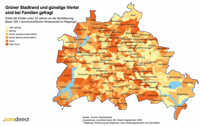 comdirect bank veröffentlicht "Städtereport Berlin" - Jeder siebte Hauptstädter ist Akademiker - Wilmersdorf bei Trendsettern beliebt - Familien zieht es in günstige Wohnviertel und an den Stadtrand