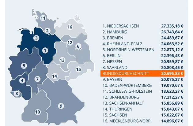 Dicht gefolgt ist Mecklenburg-Vorpommern von Sachsen und Thüringen, die etwa 15.000 Euro für die Schulbildung aufrufen.