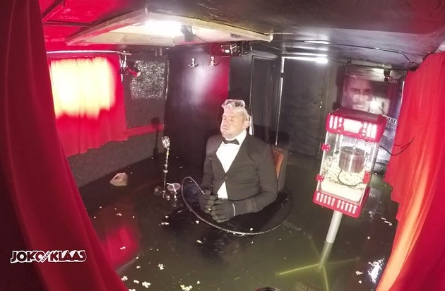 In Norwegen wartet auf Klaas ein Kinobesuch auf hoher See: Joko lädt ihn zu einer Überraschungsvorstellung in "Winterscheidts 4D Kino" auf einem Boot inmitten des norwegischen Gewässers ein. Klaas: "Das war tatsächlich so, wie man sich ein Kino vorstellt: rote Vorhänge, Leinwand, Kinosessel, Popcornmaschine." In diesem schwimmenden Kino erhält er in einer Videobotschaft von Joko seine Aufgabe: Das Filmprogramm sieht für diese Vorstellung mit Tiefgang den Filmklassiker "Titanic" vor. Dank "Winterscheidts 4D Kino" kann Klaas bei diesem Duell hautnah erleben, wie sich der Schiffsuntergang damals angefühlt haben muss. Joko erklärt: "Sobald im Film die Titanic untergeht, wirst du ebenfalls im Kino untergehen. Bleibe in dieser Kabine, auch wenn sie sich mit Wasser füllt. Erst, wenn das Boot auf Grund gelaufen ist, darfst du es verlassen und wieder auftauchen." Klaas kann es nicht fassen: "Dann versinke ich mit einem riesen Boot im Meer, gefangen in einer Kabine?" Stellt sich Klaas seiner Angst und geht mit dem Schiff unter? Oder bekommt er kalte Füße?