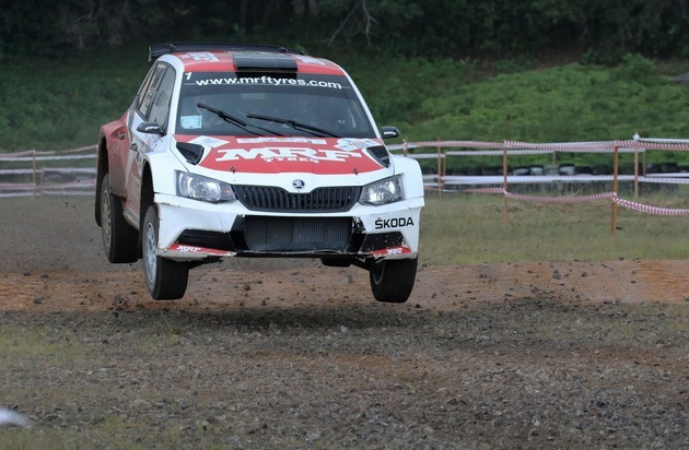 Zum Auftakt am nächsten Morgen konterte Gill mit einer Bestzeit. Doch wer sich schon auf eine Fortsetzung des die Saison prägenden, spannenden Duells der beiden MRF-Teams gefreut hatte, wurde in der dritten Wertungsprüfung enttäuscht. Auf der 29 Kilometer langen Prüfung brach am SKODA FABIA R5 des norwegischen Nachwuchsteams nach einem Riesensprung zunächst ein Stoßdämpfer. Als auch noch ein Reifenschaden hinzukam, rutschte Veiby von der Strecke und blieb in einem Graben stecken - damit war der Tag gelaufen. Gaurav Gill fuhr unterdessen an der Spitze unbeeindruckt alle weiteren Bestzeiten und beendete die erste Etappe überlegen in Führung liegend. "Es war ein perfekter Tag für uns und das Team MRF SKODA. Wir haben immer die richtige Reifenwahl getroffen, außerdem hat die Fahrwerksabstimmung unseres SKODA FABIA R5 hervorragend gepasst. Die Bedingungen waren wirklich hart, viel harter Schotter mit groben Steinen, und das bei Durchschnittsgeschwindigkeiten von mehr als 125 Kilometern pro Stunde", fasste der indische SKODA Pilot zusammen.