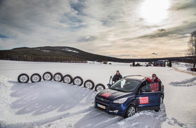 Acht Reifen der Dimension 235/55 R17 wurden von GTÜ und ACE auf einem Ford Kuga in Schweden bei typischen Winterverhältnissen mit Schnee und Eis sowie zusätzlich in Deutschland auf dem Contidrom in jeweils 15 Disziplinen einem harten Praxistest unterzogen.