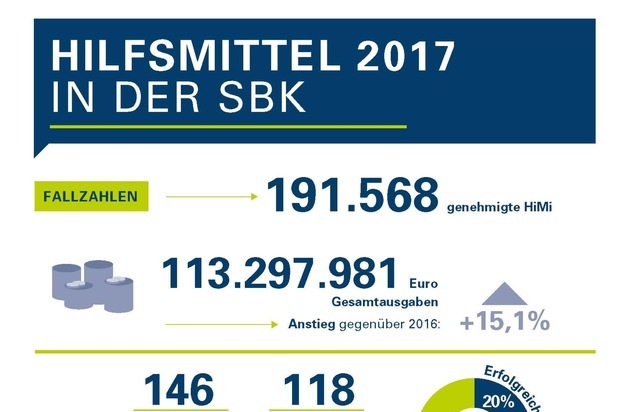 In 118 Fällen in 2017 reichten betroffene Versicherte gegen eine Ablehnung im Bereich Hilfsmittel Widerspruch bei der zentralen Widerspruchsstelle der SBK ein. Bei seiner Prüfung ist der Widerspruchsausschuss, paritätisch besetzt mit Versicherten und Arbeitgebern, an das geltende Recht gebunden; in berechtigten Fällen revidiert er die Entscheidung der SBK. In knapp 80 Prozent der Fälle hielt die Entscheidung der SBK der unabhängigen Prüfung durch den Widerspruchsausschuss stand. 17 Versicherte haben nach Bestätigung der Ablehnung auch durch den Widerspruchsausschuss in 2017 Klage vor dem Sozialgericht erhoben. Demmler: "Widersprüche gab es unter anderem bei der Versorgung mit Hörgeräten, bei tragbaren Defibrillatoren oder der umstrittenen Helmtherapie für Babys. Unsere Kundenberater konnten die Betroffenen in der Regel schnell und vor allem rechtssicher unterstützen."
