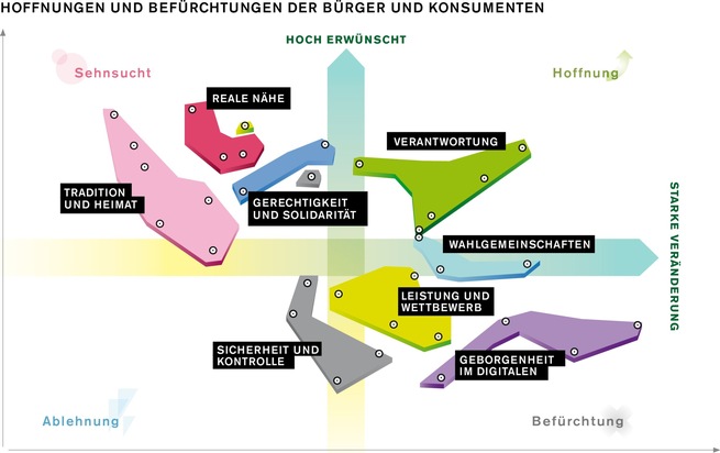 Entscheidungen werden unabhängig davon, ob sie konsumbezogen, persönlicher oder politischer Art sind, stark von Werten bestimmt. Ein Blick auf die Werteentwicklung lässt daher Rückschlüsse auf künftige Wünsche, Bedürfnisse und Befürchtungen zu. Unterneh¬men und Politik können daraus Hinweise ableiten, welche strategischen und operativen Weichen heute schon gestellt werden sollten.